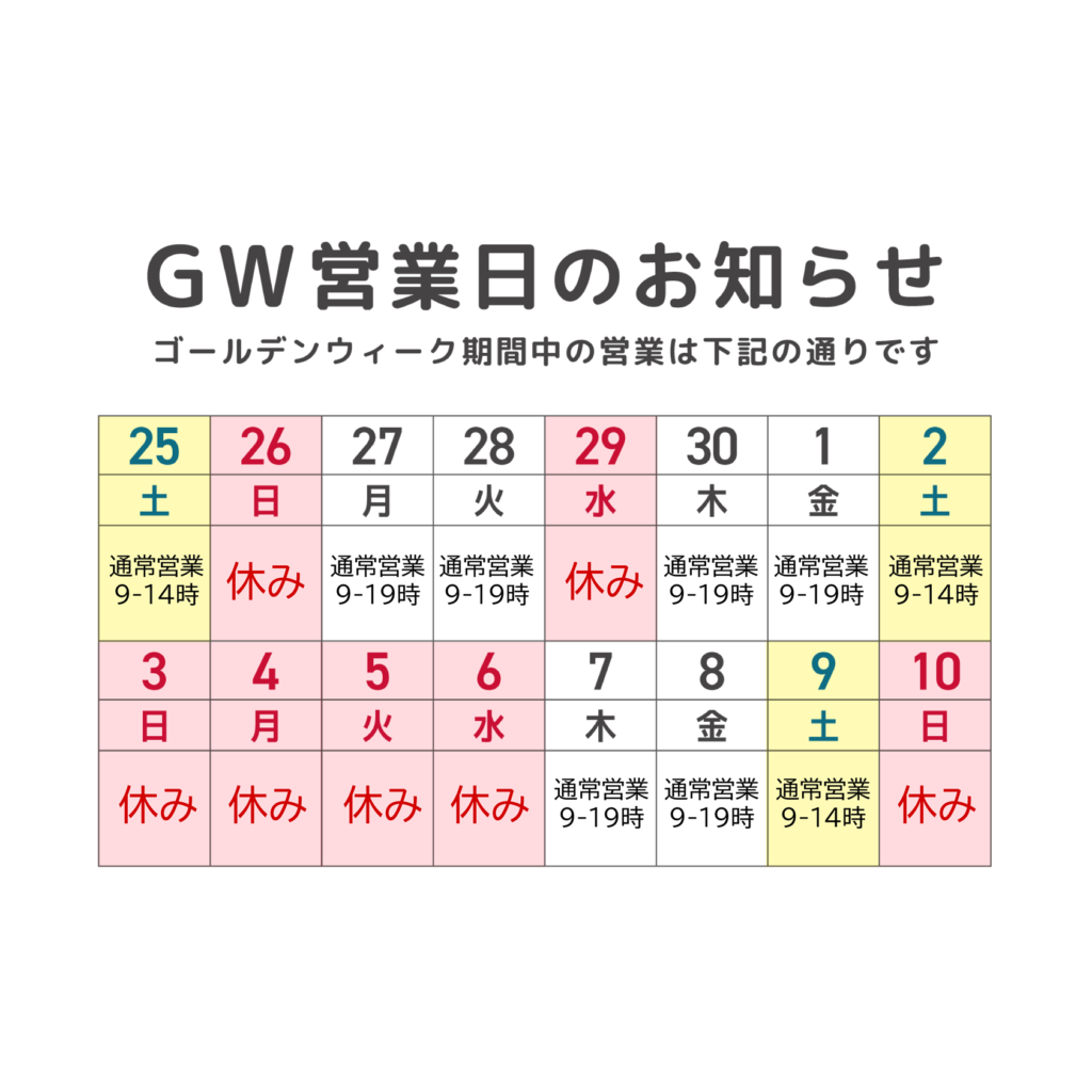GWは暦通りの営業となります。よろしくお願いいたします -